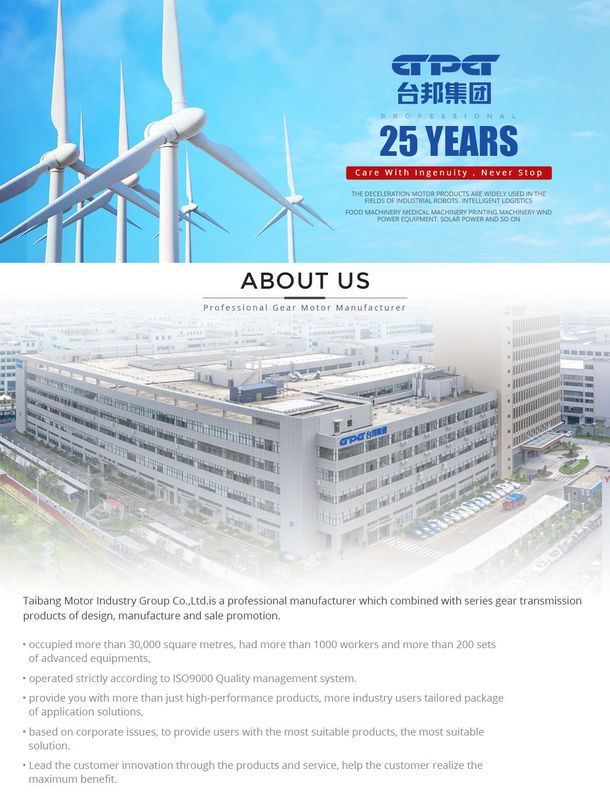 تایبانگ متعهد به ایجاد ارزش برای مشتریان و ارائه محصولات و خدمات فنی موتور دنده برتر است.تایبانگ به عنوان پیشرو در نوآوری در زمینه موتورهای دنده ای، نه تنها محصولات با کارایی بالا را در اختیار مشتریان قرار می دهد، بلکه می تواند راه حل هایی را نیز برای مشتریان طراحی کند.در عین حال شبکه فروش و سیستم خدمات پس از فروش کارآمد و سالم را برای ارائه خدمات با بهترین کیفیت به مشتریان در داخل و خارج از کشور ایجاد کنید.